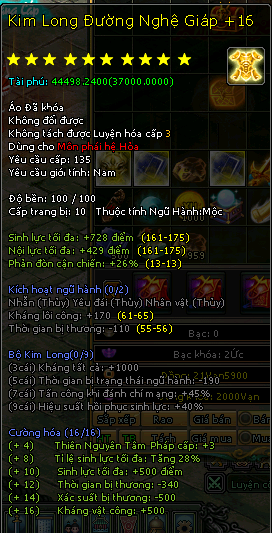 Rương Trang Bị Long Hồn Giá: 50 Kim Nguyên Bảo Đại Mở rương cần 1 món trang bị Kim Long tương ứng |