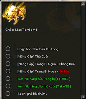 Đối Thoại NPC nâng cấp chọn : Cường Hóa Thần Thú Du Long |